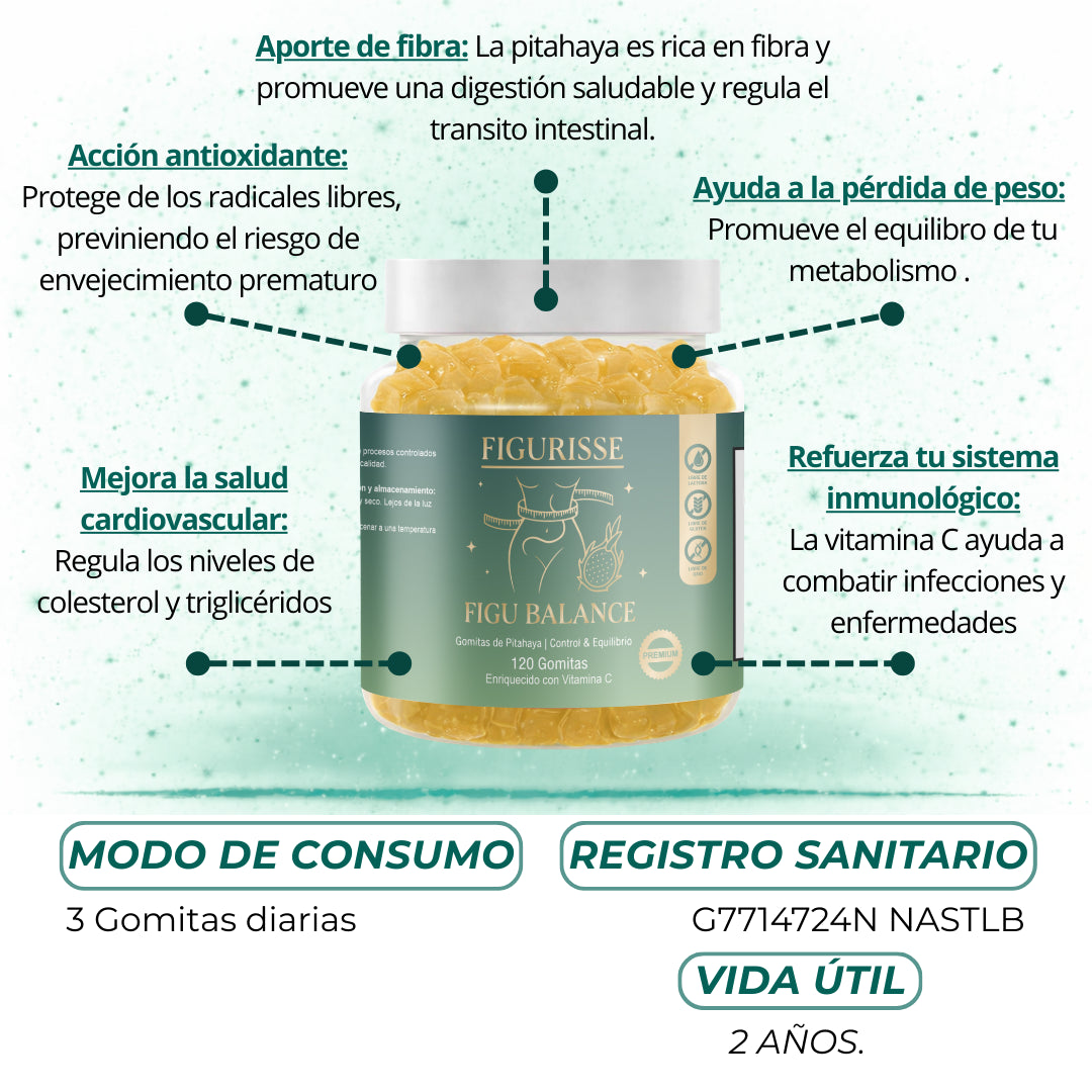 Con nuestras GOMITAS FIGU BALANCE, hechas con pitahaya, podrás apoyar tu digestión de forma natural, ayudando a sentirte más ligera y en equilibrio cada día. Además, su aporte de fibra y antioxidantes contribuye al bienestar integral y puede apoyar tu proceso de control y pérdida de peso de forma saludable, bella.
